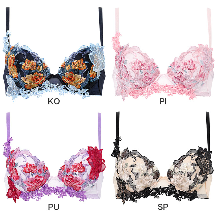 ・カップには刺繍の柄に合わせたプリントレースを使用