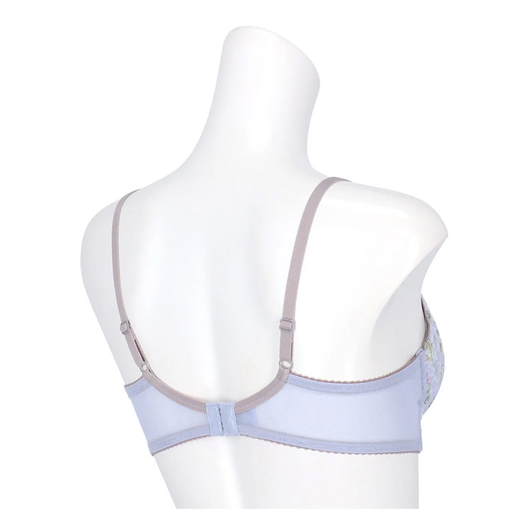 ハリとコシのあるプッシュアップ成型カップ(モールドカップ)が自然なまるみのあるバストをメイクし、カップ脇の切り替えで、サイドのラインをすっきりととのえる