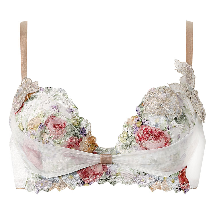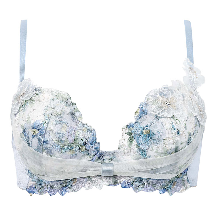 人気の「リボンブラ 胸もとフィットながもち」シリーズからプレシャスなデザインが登場。カップがパカパカ浮きやすい方や着用時に寄せた谷間をキープしたいという方におすすめです。