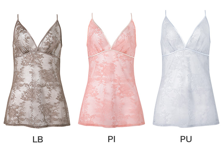 リバーレースの優美な花々に可憐な蝶々のモチーフが舞う繊細で軽やかなキャミソール。