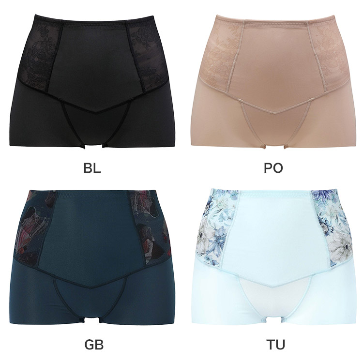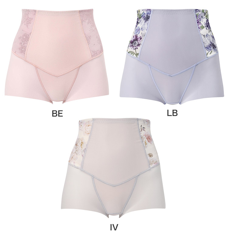 はきこみ丈を通常のジャストウエストより高めの丈にすることで、おなか・ヒップのリフトアップ効果を高め、よりスリムなシルエットを追求。さらにヒップ下はパワー切り替えのない素材で、たるみをぴったり包み、美しいシルエットをキープ