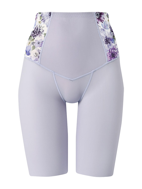 はきこみ丈を通常のジャストウエストより高めの丈にすることで、ふとももからおなか、ふとももからヒップのリフトアップ効果を高め、よりスリムなシルエットを追求。さらにヒップ下はパワー切り替えのない素材で、たるみをぴったり包み、美しいシルエットをキープ