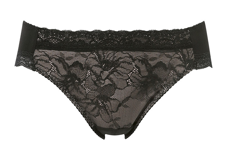 バック裾には繊細なストレッチレースをあしらい、アウターにひびきにくい仕様に。