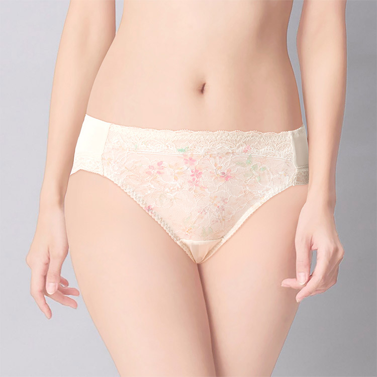 バック裾はやさしいフィット感のストレッチレースを使用し、ラインがひびきにくい