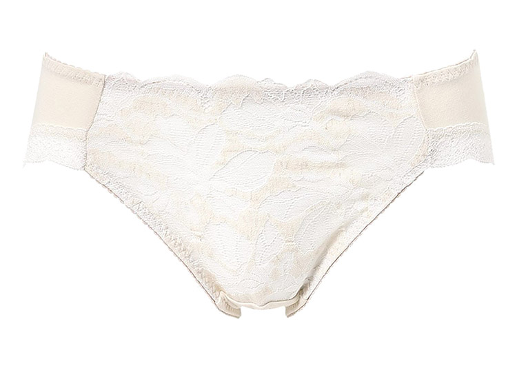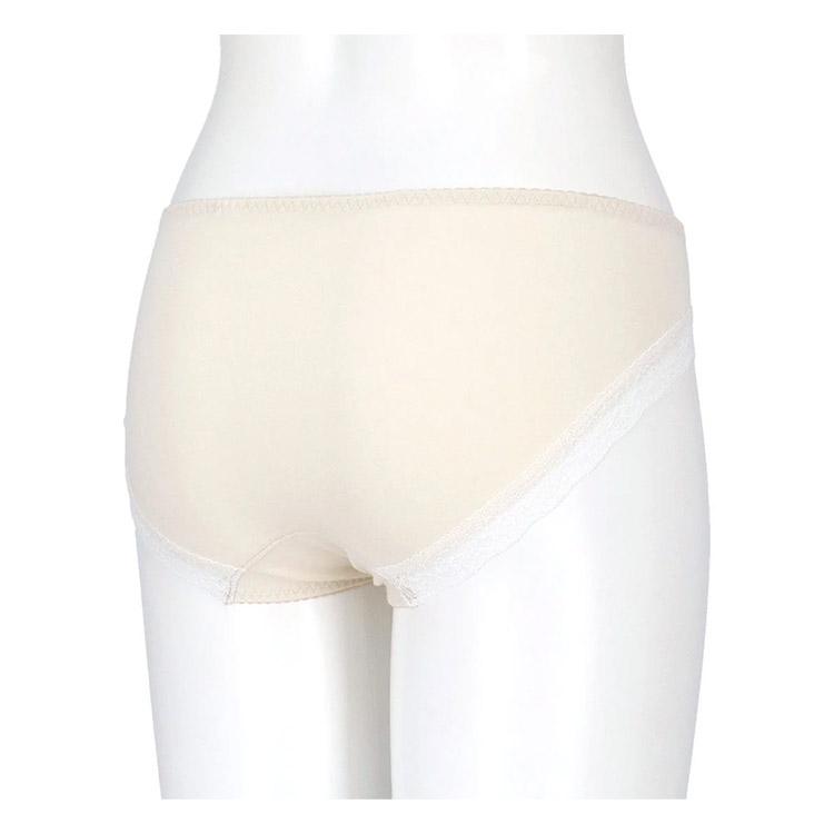 バック裾はやさしいフィット感のストレッチレースを使用し、ラインがひびきにくい