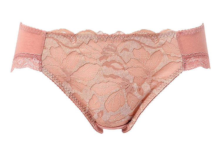 もちっとふわっとブラ(KB2368)シリーズとペアコーデが楽しめるショーツ。身生地部にはフィット性がよくソフトな風合いの綿混素材を、ウエストと前裾には伸びのよいテープを使い、やさしいはきごこちにこだわりました。バック裾には繊細なストレッチレースをあしらい、アウターにひびきにくい仕様に。フロントにレースをあしらった華やかなデザインです。