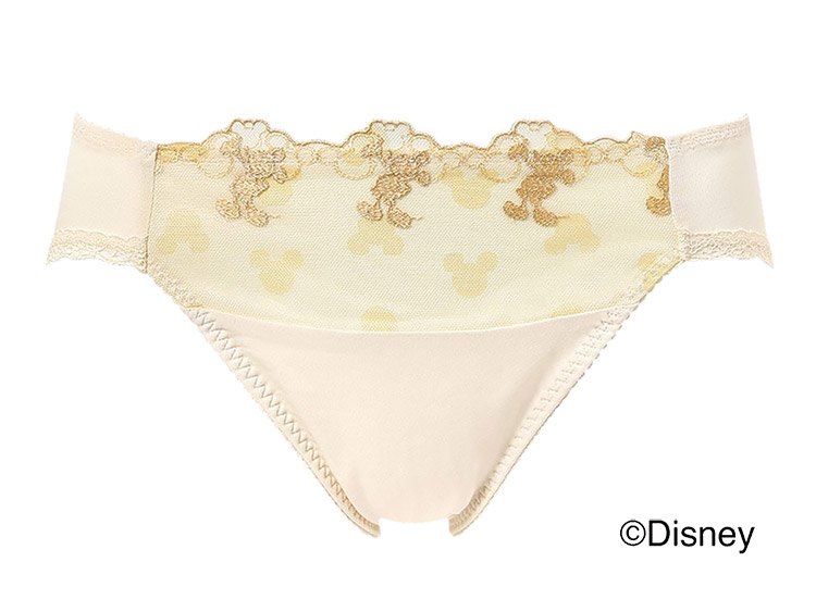ウイングブランド誕生50周年を記念したスペシャルデザインで、ナチュラルアップブラ(KB2063)シリーズとのペアコーデが楽しめるショーツ。世界中で大人気のディズニーキャラクターをデザインした特別なアイテムになりました。ポイントは、「ミッキー」を描いたかわいいレース。思わず集めたくなる2柄×2色の展開です。身生地部にはフィット性がよくソフトな風合いの素材を、ウエストと前裾には伸びのよいテープを使い、やさしいフィット感に仕上げました。バック裾には繊細なストレッチレースを使い、アウターにひびきにくい仕様に。