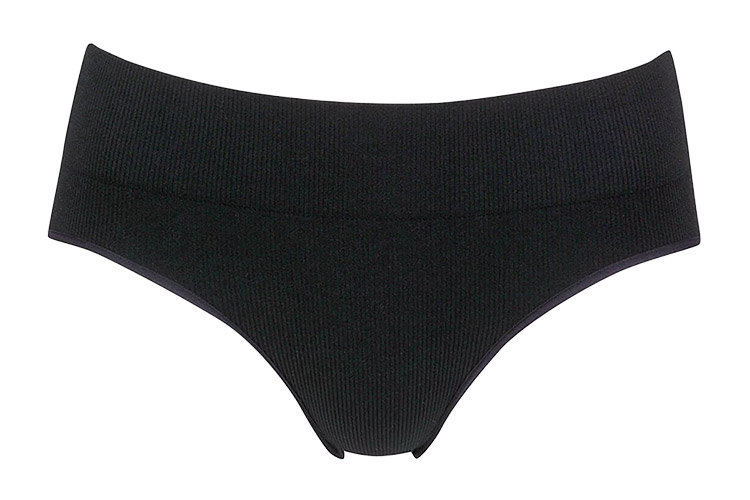 幅広リブ素材でウエストのズレを軽減