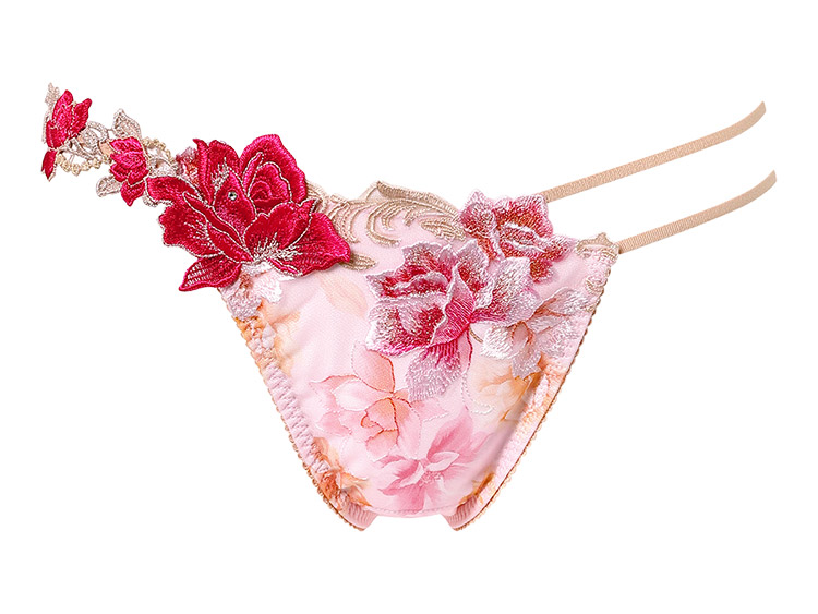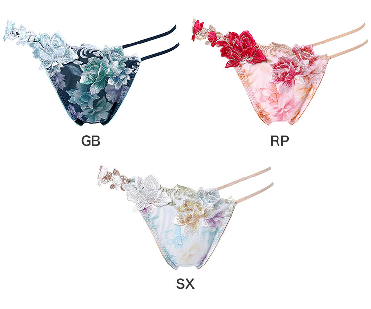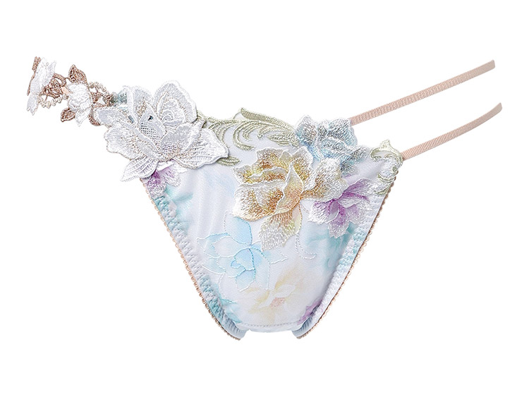 ・フロントには刺繍の柄に合わせたプリントレースを使用