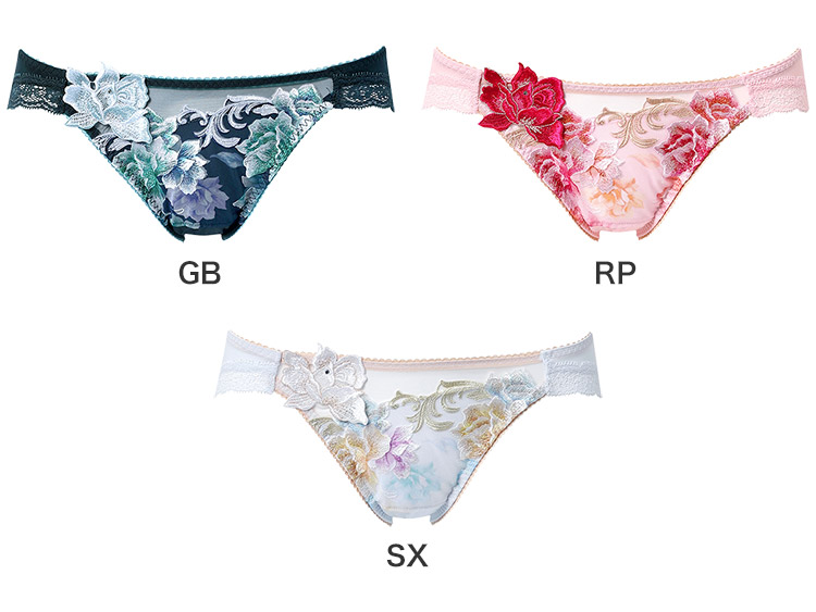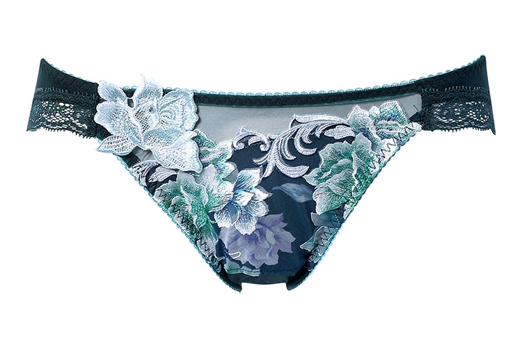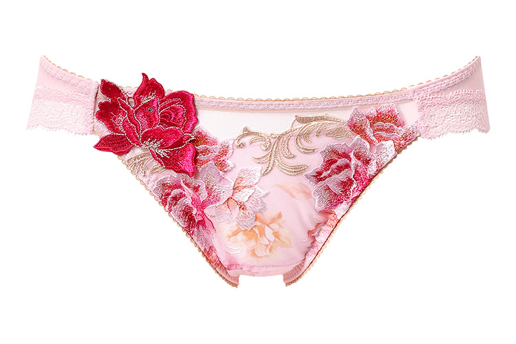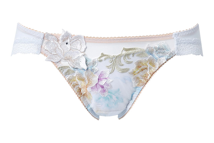 流れるようにしなやかなラインが優雅なシリーズ。額縁をモチーフにした曲線が豊かな色彩の花々を引き立て、まるで絵画を見ているような気分に。神秘的な美しさをもつアルバローズをイメージしたアップリケにはきらめくクリスタルをあしらいました。フロントは上品な透け感のあるチュールを部分的に取り入れることで、透け感とレースの調和を楽しめるデザイン。心華やぐ鮮やかなカラーが日々に彩りをプラスするアイテムです。