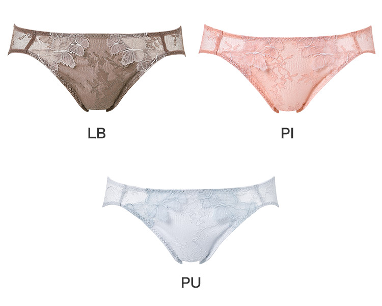 優美なリバーレースの花々に可憐な蝶々のモチーフが舞う、繊細で軽やかなデザインのショーツ。