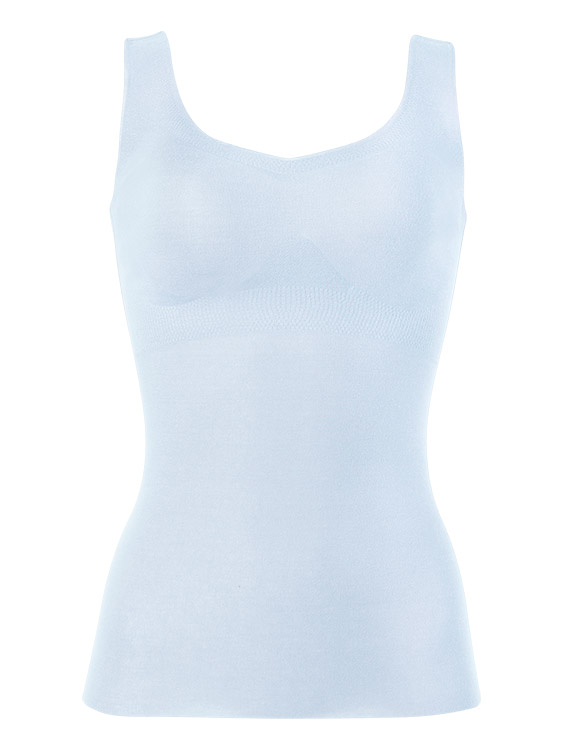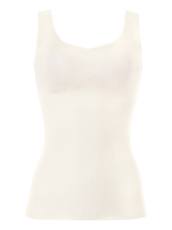なめらかな肌あたりのフリーカッティング素材で、洋服にひびきにくくすっきりとしたシルエットに仕上げました。