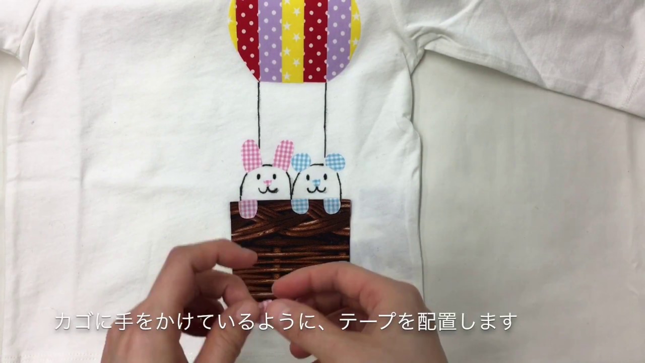 「くるくるおなまえテープ」でTシャツデコレーション♪気球に乗るウサギとクマ(ポケット付き)
