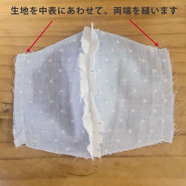 5)3で縫い合わせた二枚を縫い代側を外にして重ね、両端を縫い合わせます。