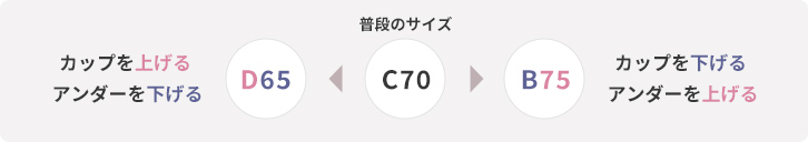 (例)トップバスト83センチ、アンダーバスト69センチの場合のブラジャーサイズはC70になります。