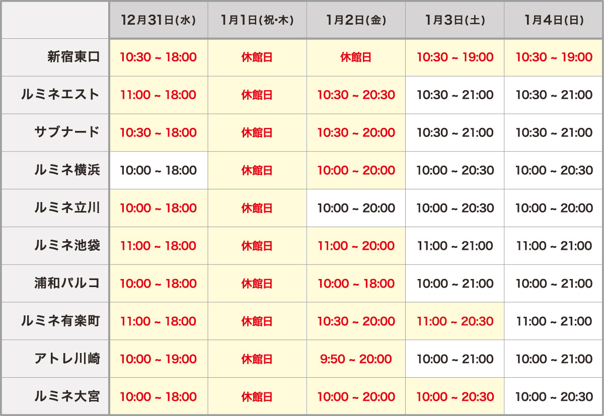 ※各店の通常営業時間は ショップリストよりご確認いただけます。