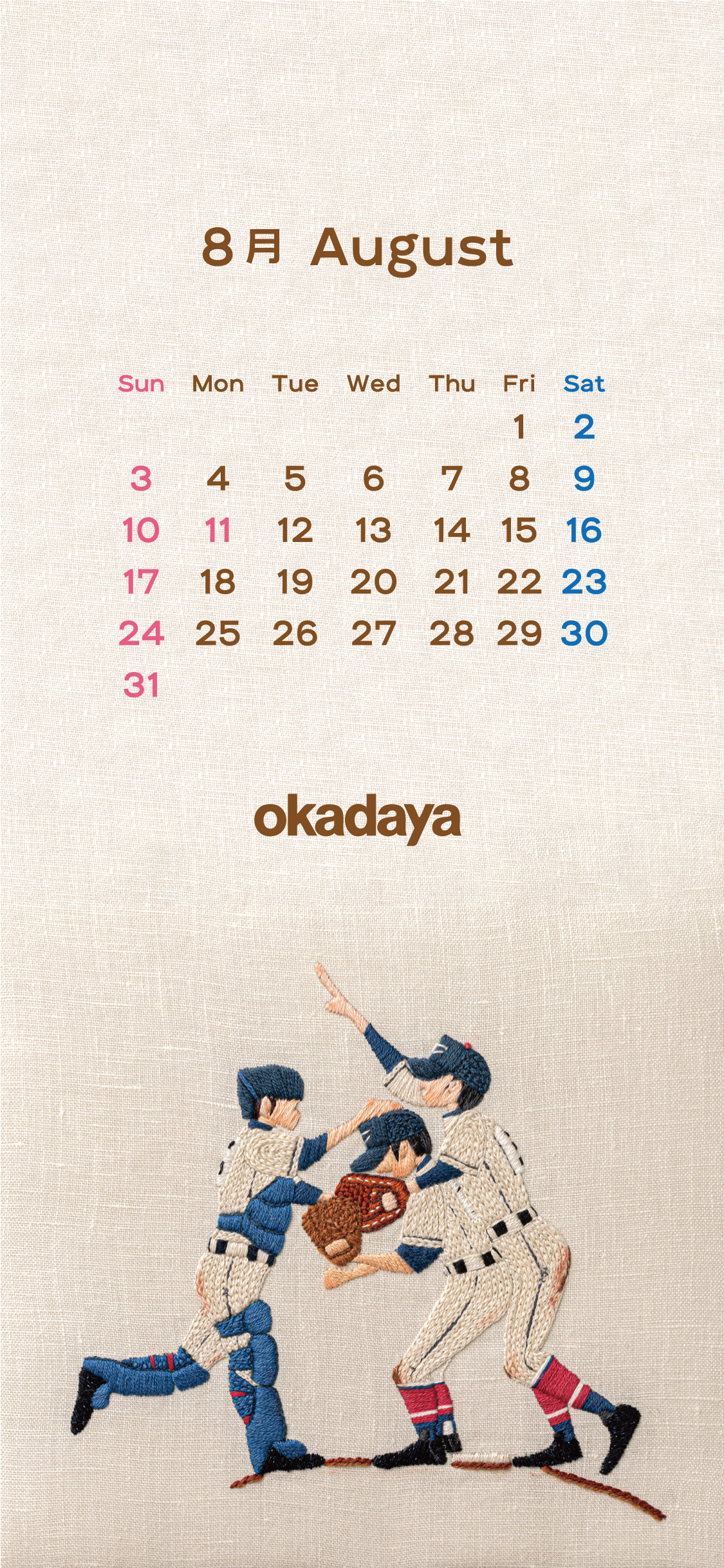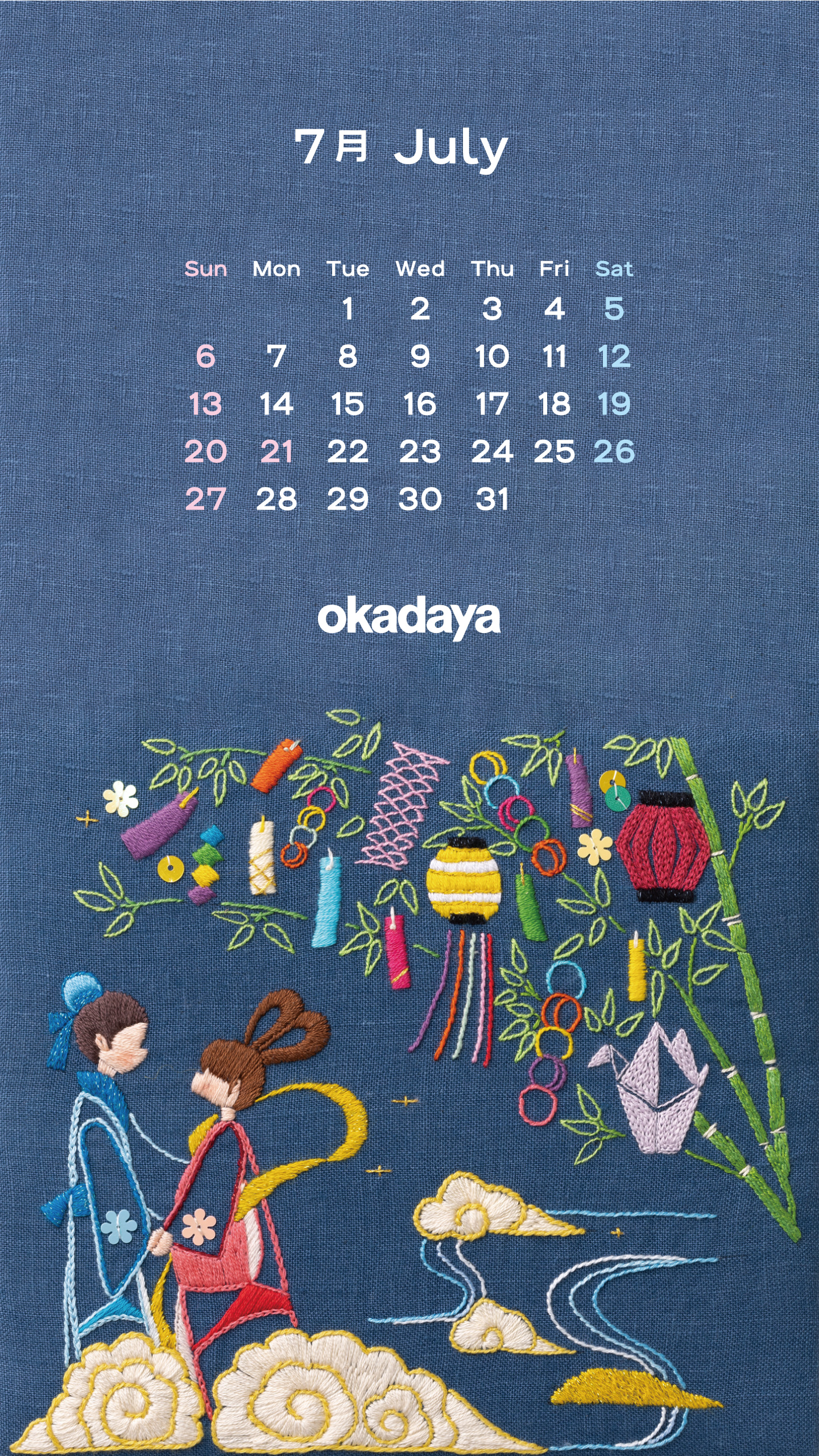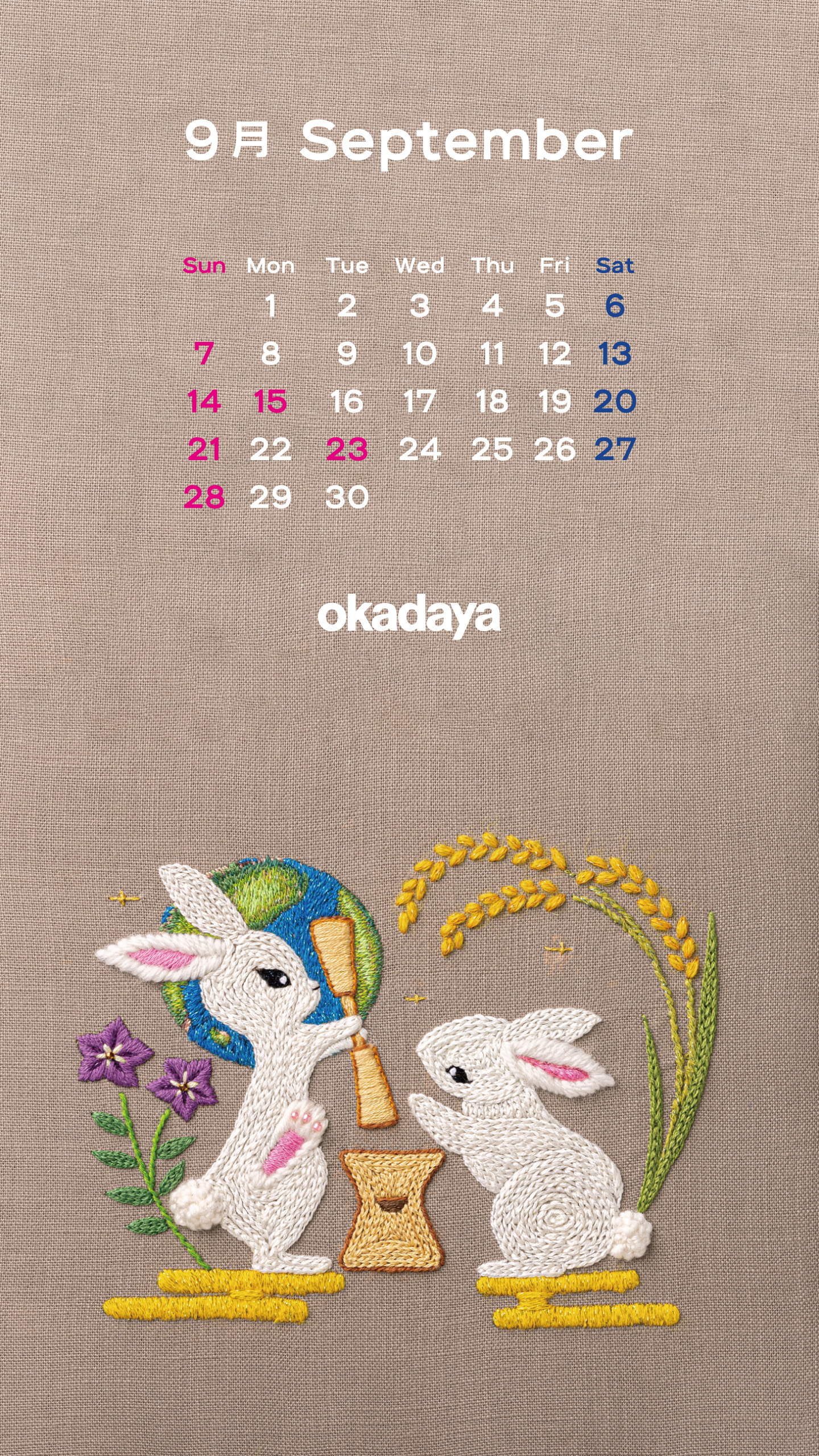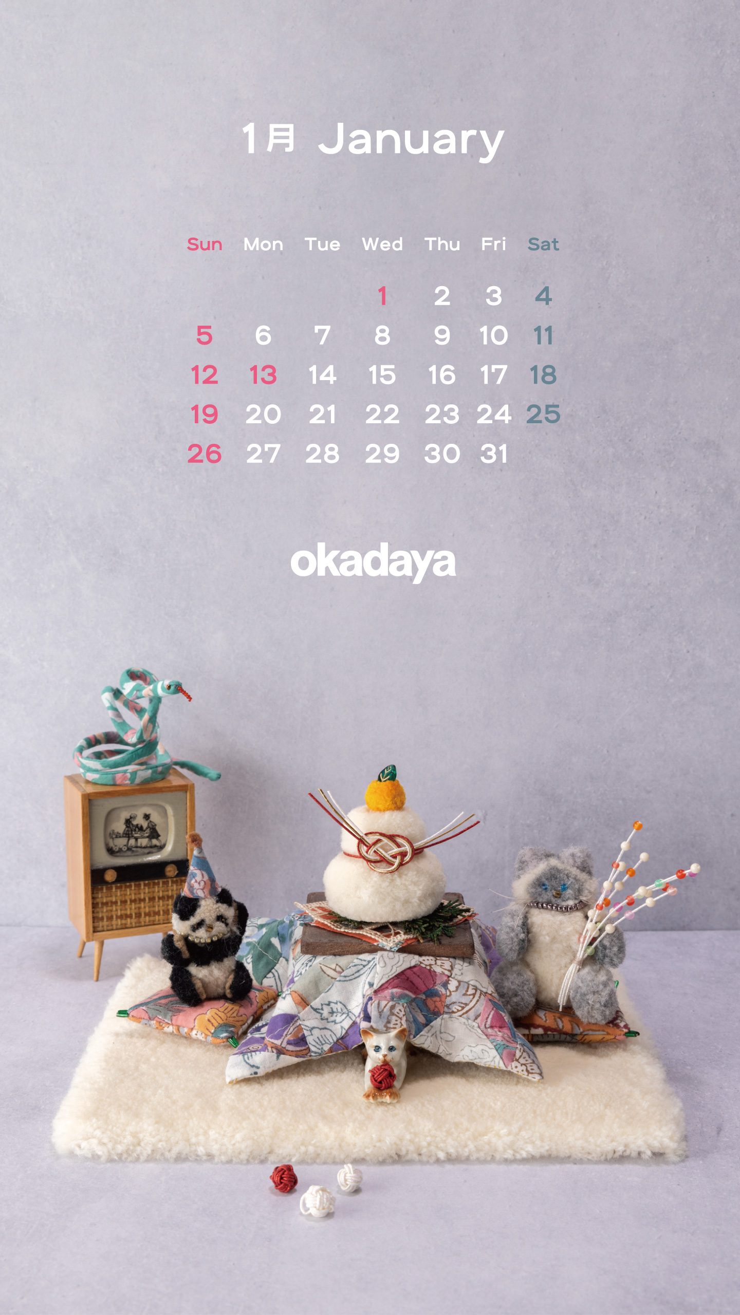 2024.12.23 2025年okadayaオリジナルカレンダー 壁紙ダウンロード ダウンロードしてお使いください。 2025年 1月・2月・3月 Android iPhone Android iPhone Android iPhone @glimmer_globe 布小物・パンチニードル作家 glimmer globeさん “使っても飾っても”をコンセプトにパンチニードルで製作したアクセサリーやぬいぐるみ 木版プリントを使用した布小物やお部屋で楽しむインテリア小物等 使って、触って、飾って、見て、楽しめるそんな身近なもの達を製作しています。 活動や販売のお知らせはInstagramにて。 2025年 4月・5月・6月 Android iPhone Android iPhone Android iPhone @kaho.f.s ちくちくアートチャンネル フリーモーション刺繍作家 ちくちくアートKAHO さん フリーモーションを使い、 一筆書きのように糸を繋げて描きます。 アップリケやビーズ刺繍、絵の具など様々な技法と組み合わせ、 これまでにない新しい刺繍アートに挑戦しています。 個展の情報や作品の販売はインスタグラムより。 制作の様子はYouTubeでお楽しみください。 2025年 7月・8月・9月 Android iPhone Android iPhone Android iPhone @atelier_toya_embroidery 刺繍作家 刺繍パパ アトリエ鳥屋さん 「物語のある刺繍」をテーマに作品を制作しています。 人が嬉しく思った瞬間。 愛おしいと思った瞬間。 そんな一瞬をクローズアップしたような刺繍を刺せたら幸せに思います。 minneにて刺繍アクセサリー作品を販売 おしゃべりしながら刺繍を楽しむ刺繍会を開催 2025年 10月・11月・12月 Android iPhone Android iPhone Android iPhone @tsumugi_koubou 編物作家 ツムギコウボウさん 伝統的なスウェーデン編み人形を独自にアレンジした作品を制作。 見て可愛く、触って癒される。 いつも近くで寄り添ってくれるような人形作りを目指しています。 HMJFやデザインフェスタなどへの出展のほか、期間限定でオーダー依頼も承っております。 2024年10月30日「ツムギコウボウが編む 棒針編みのあみぐるみ」(ブティック社)出版 ※アプリからはダウンロードできません。スマートフォンをご利用の場合は、外部ブラウザよりダウンロードをしてください。