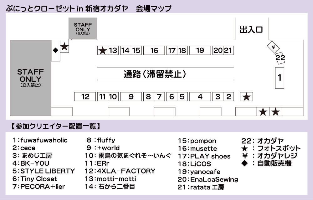 ※各ブースの販売商品、在庫数などの問合せには対応できませんので、あらかじめご了承ください