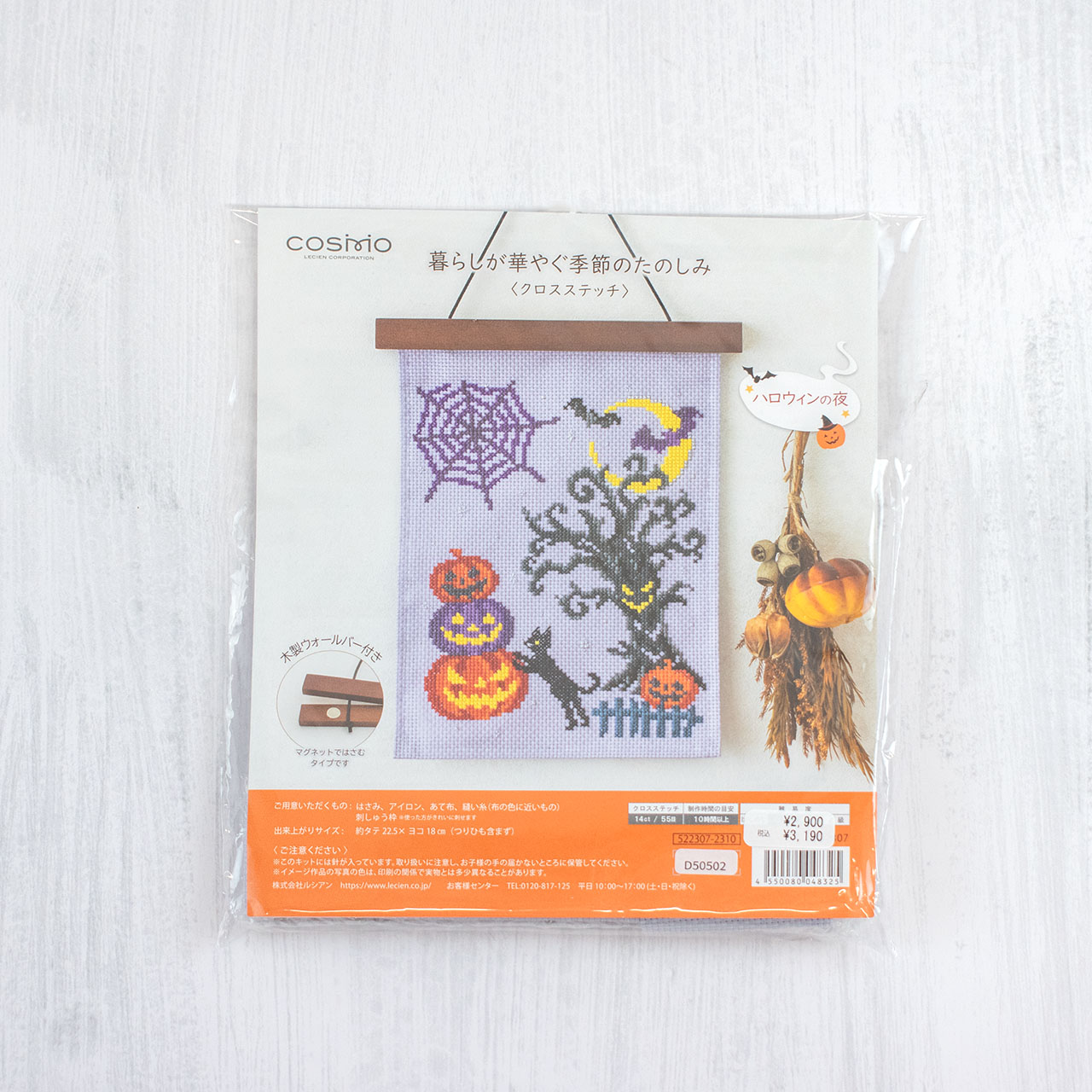 ハロウィンの夜をイメージした絵柄がかわいいクロスステッチのキットです。