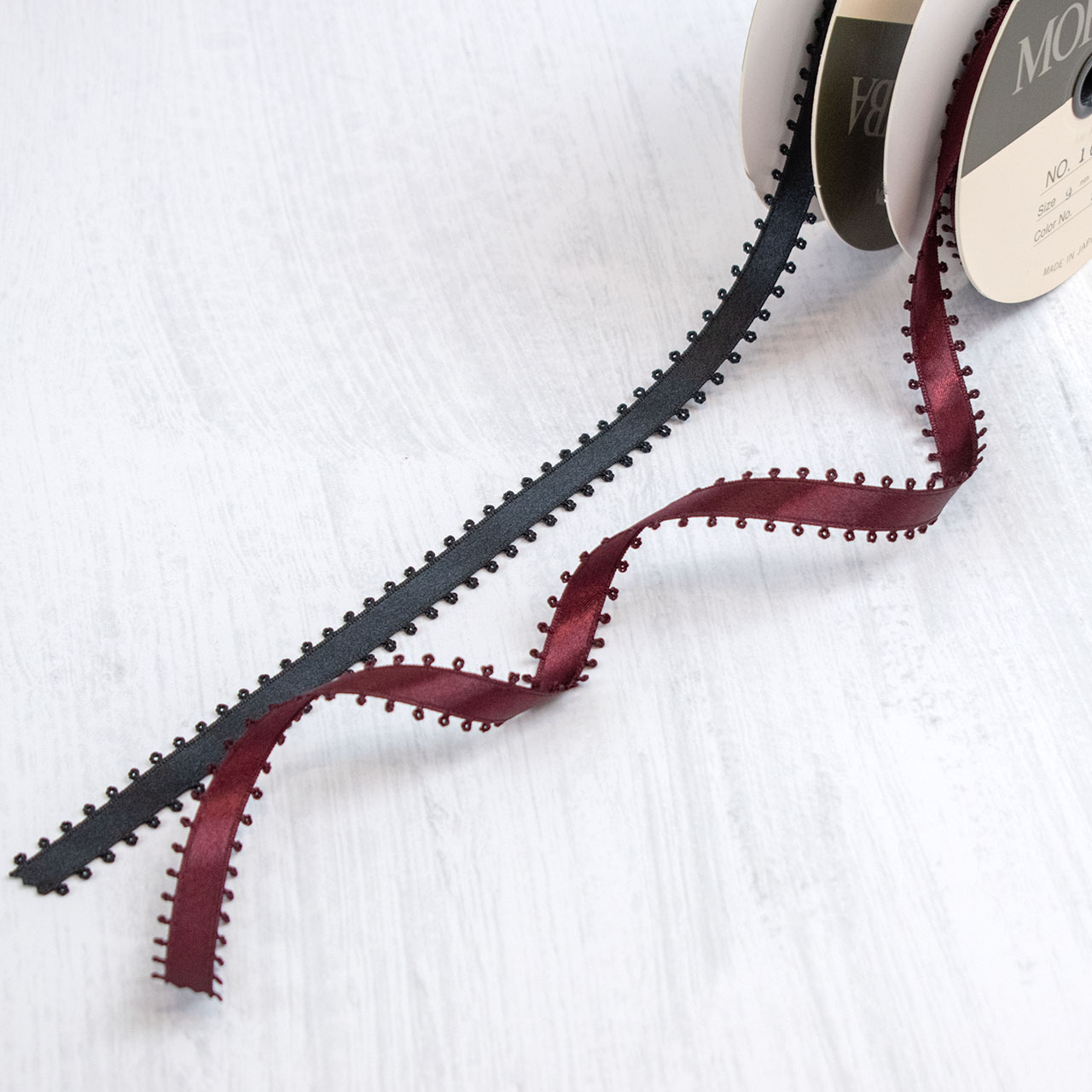 しっかりしたリボン地にエッジのピコが可愛らしいリボンです。