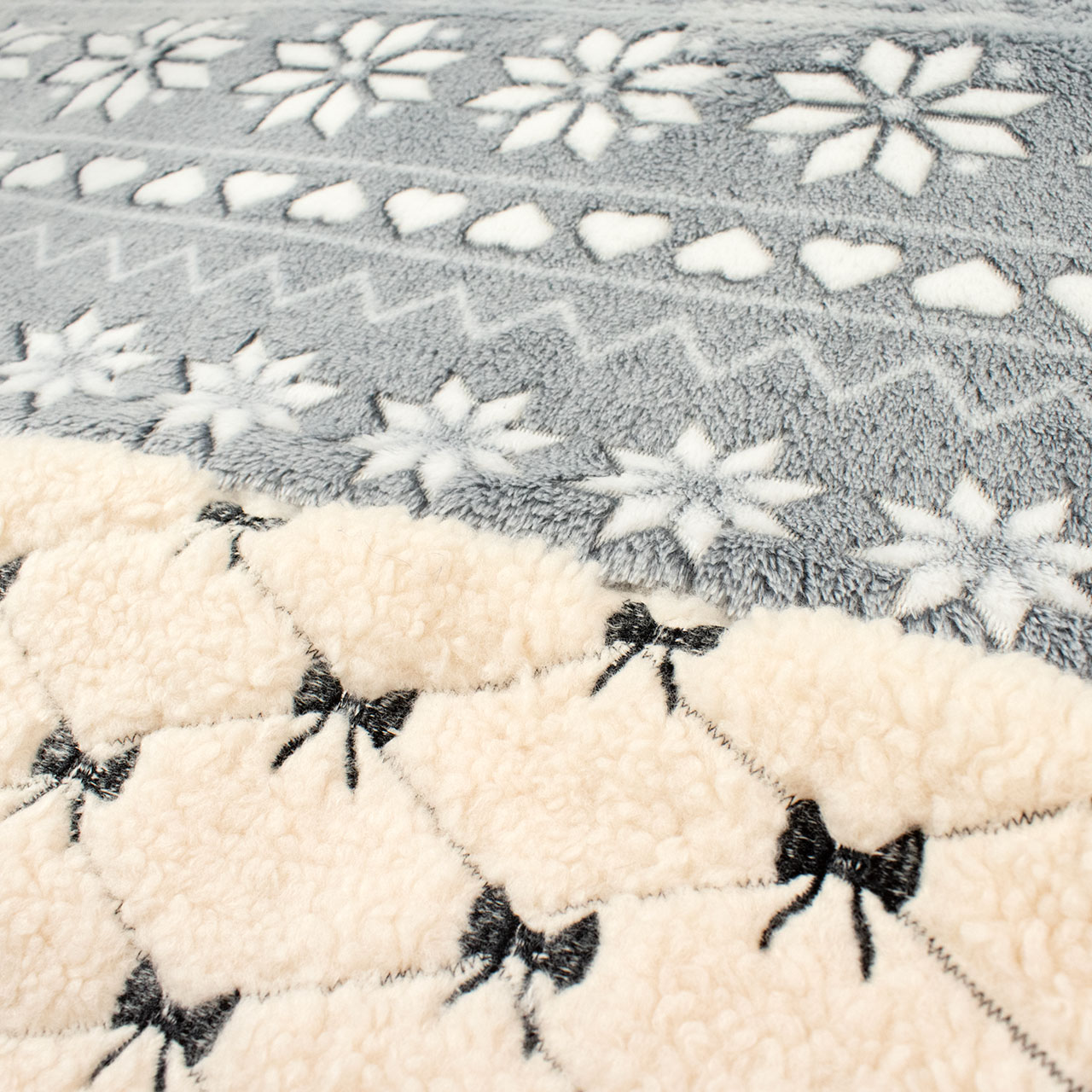 ふわふわとしたフェイクファーにキュートなリボンや雪の模様があしらわれたカット着分です。小物作りにオススメです。