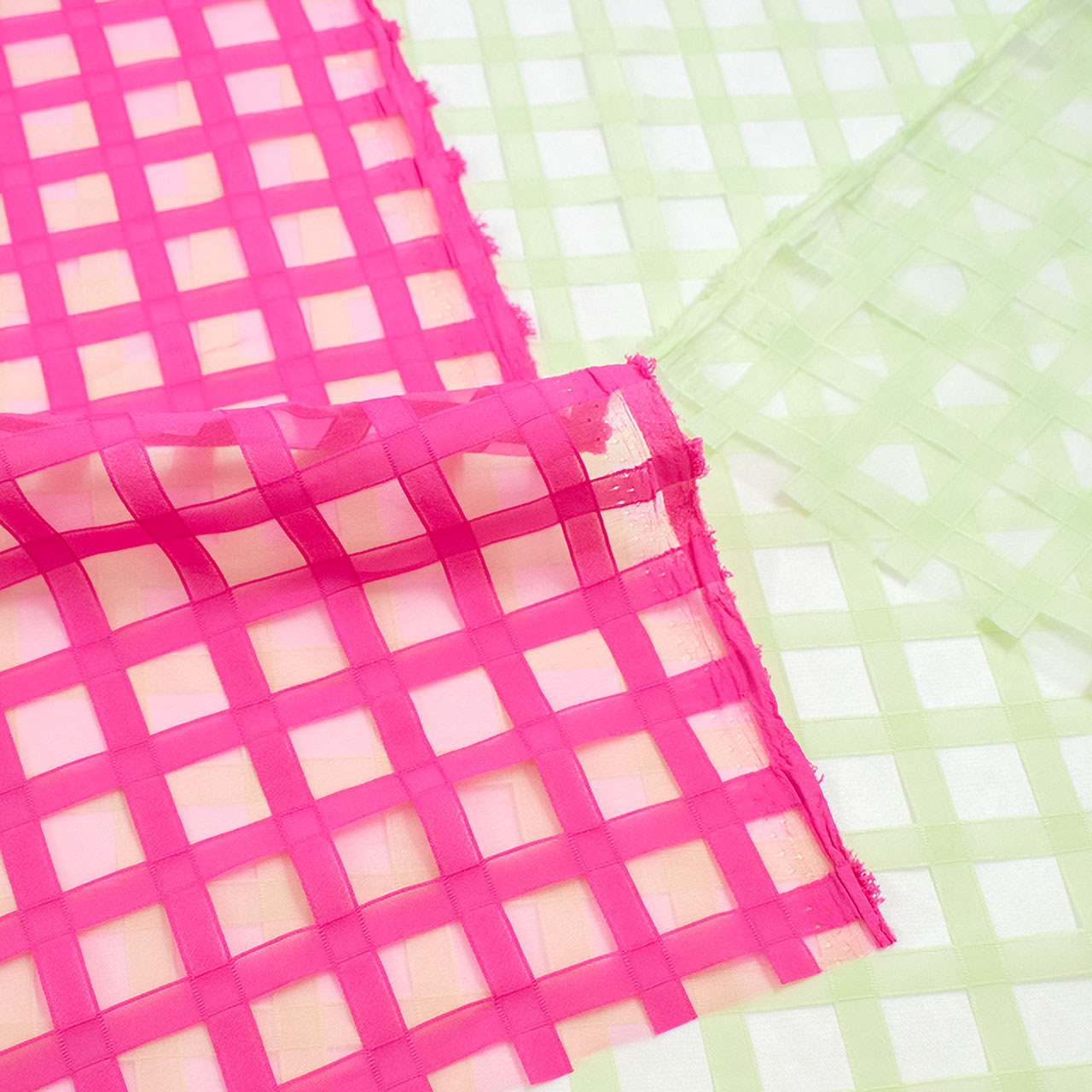 格子柄のオーガンジーです。アイドル衣装のようなカラーバリエーションが魅力です!