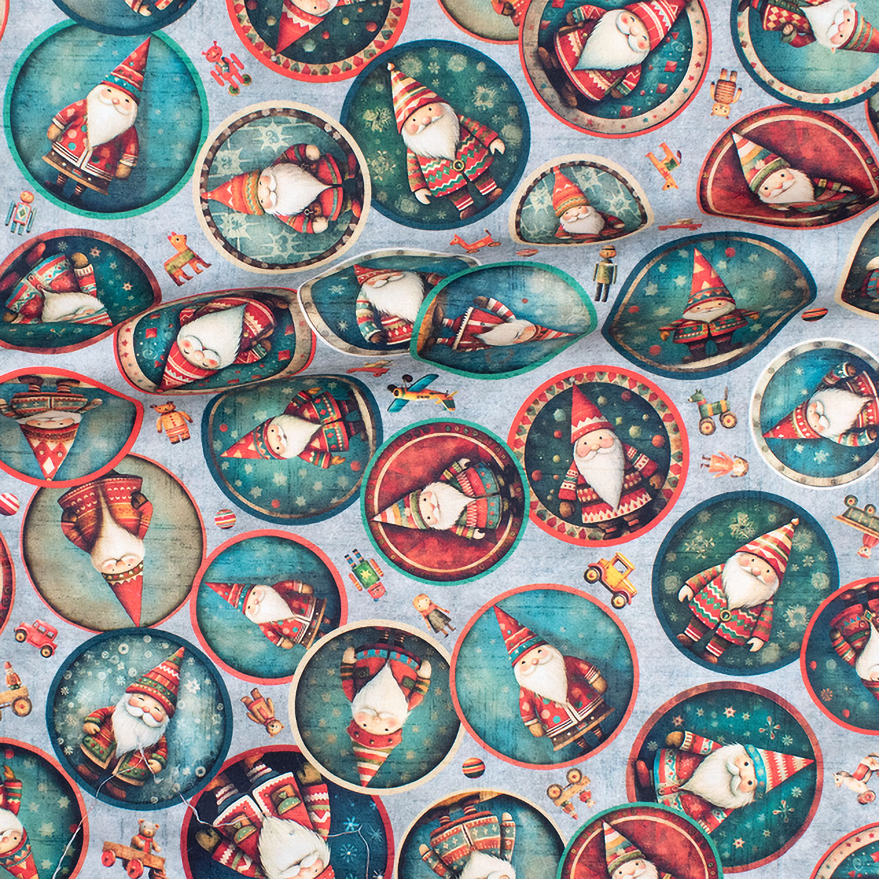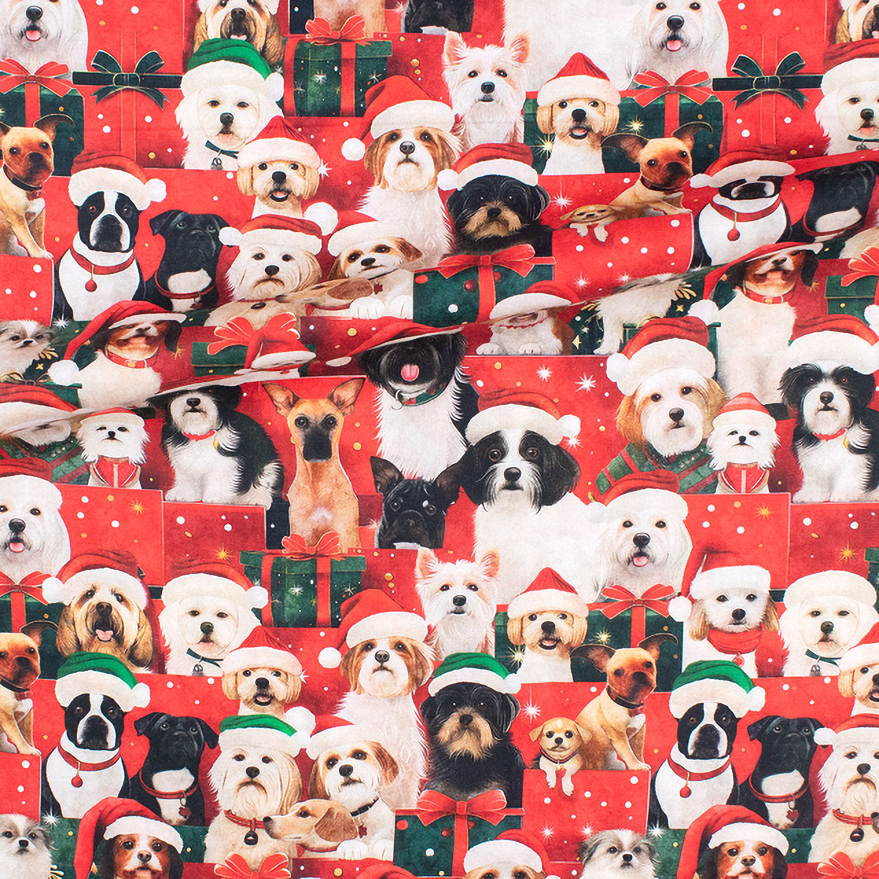 サンタ帽をかぶったワンちゃんが目を引く柄です。薄手で小物作りなどにおすすめです。