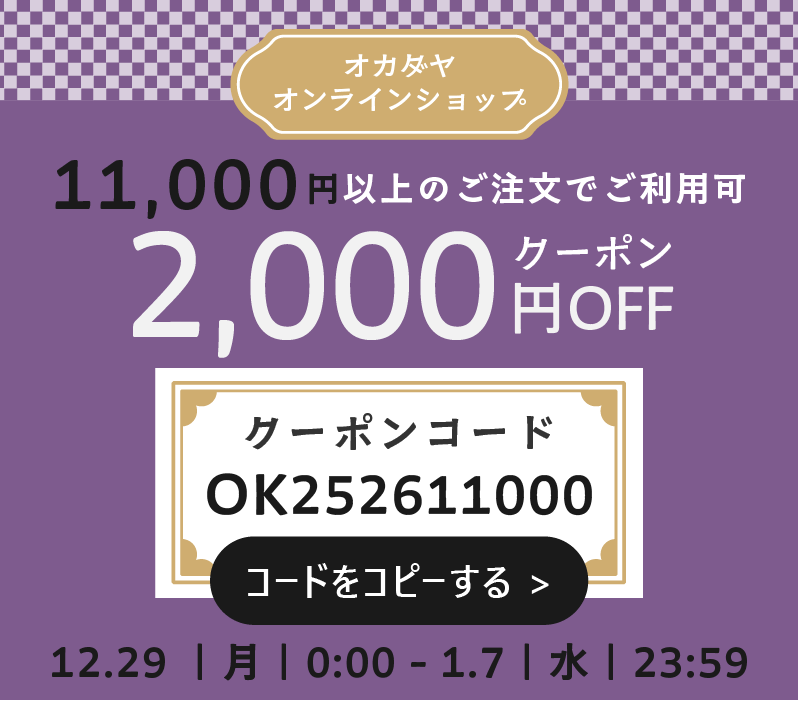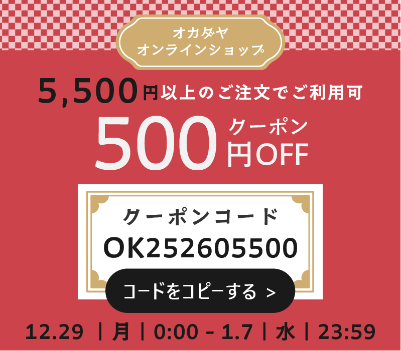 オカダヤオンラインショップでは12/29(月)0:00から、お年玉クーポンを開催します!