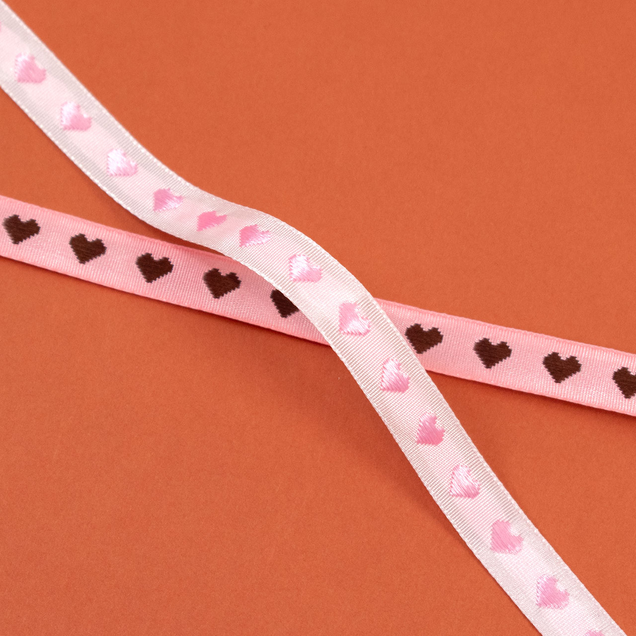 ハートが刺繍された細幅のリボン。