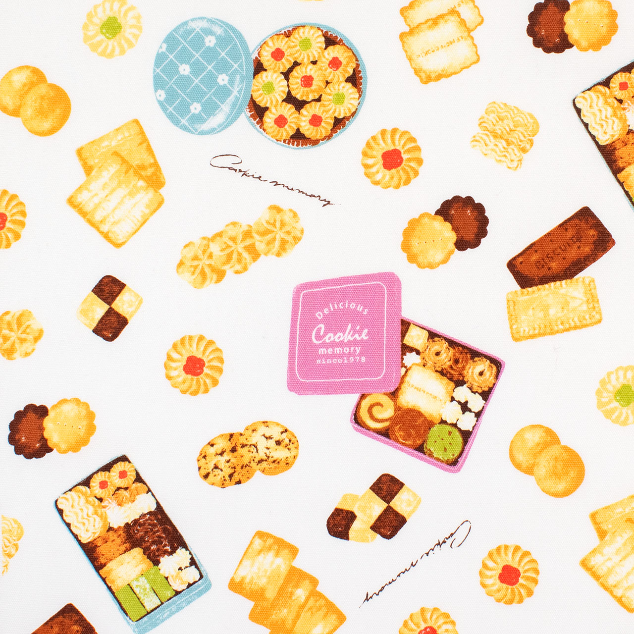 美味しそうなクッキーの柄の生地です。適度なハリのあるオックスで、小物作りにおすすめです。