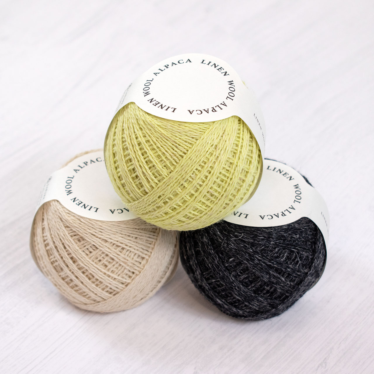リネン、ウール、アルパカ異なる素材をブレンドした風合い豊かな編み糸。