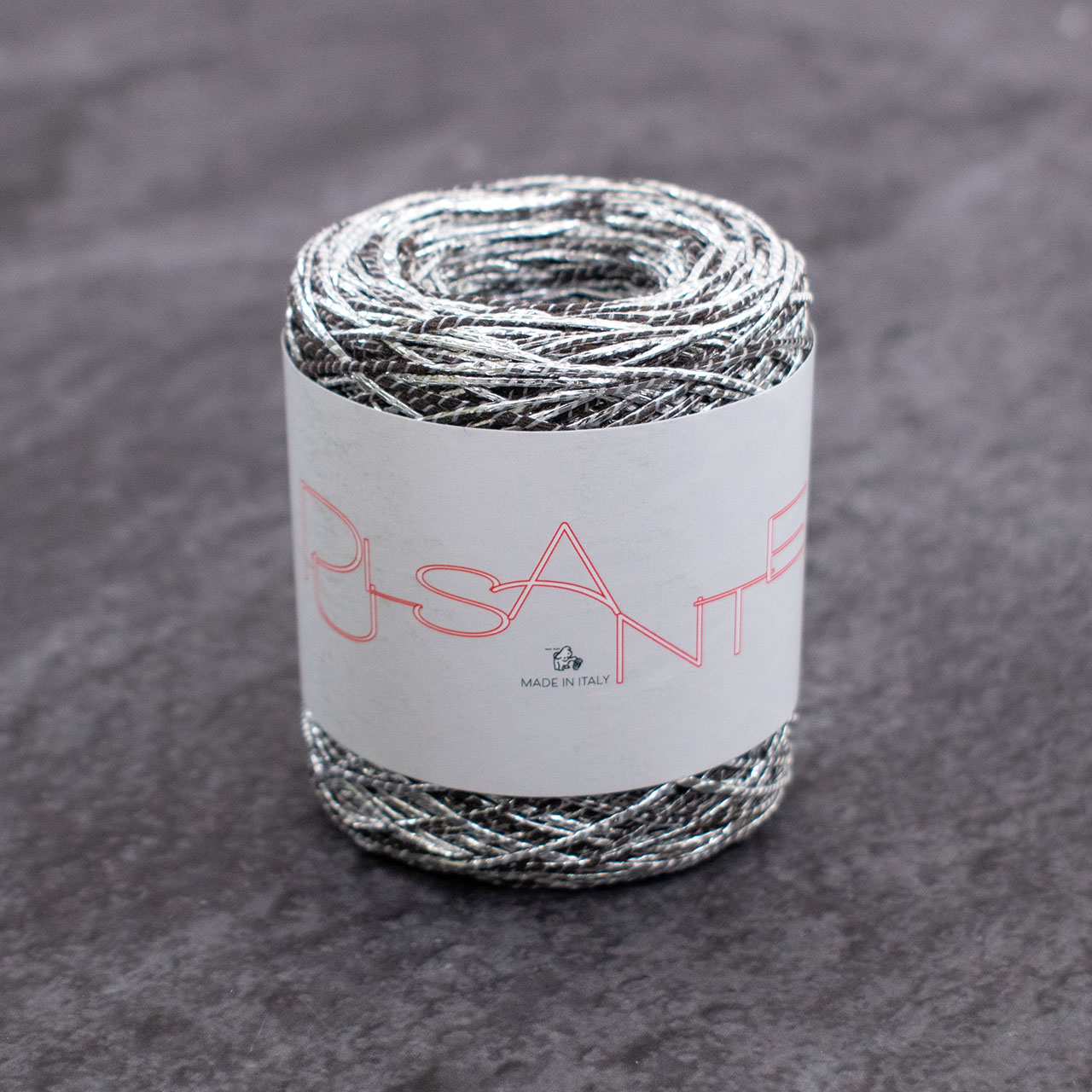 上品なラメがきらりと光る編み糸。程よい張りがあり、ウェアから小物まで幅広く楽しめます。