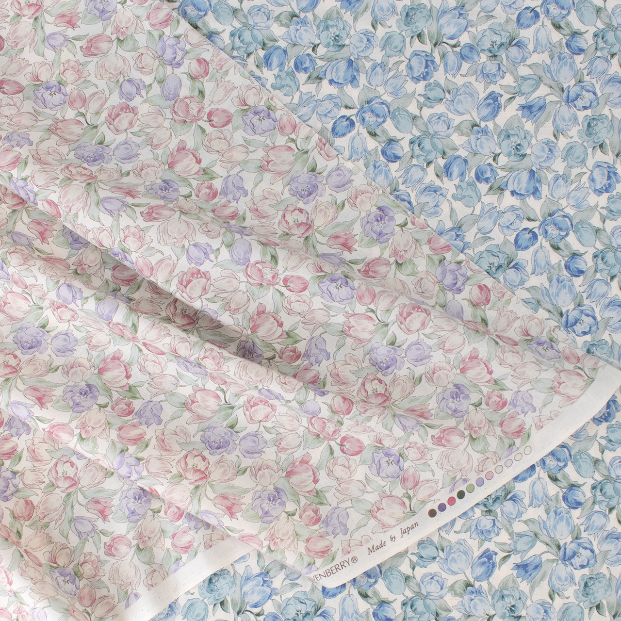 淡いチューリップが華やかなスケアプリントです。ウェアや小物におすすめです。