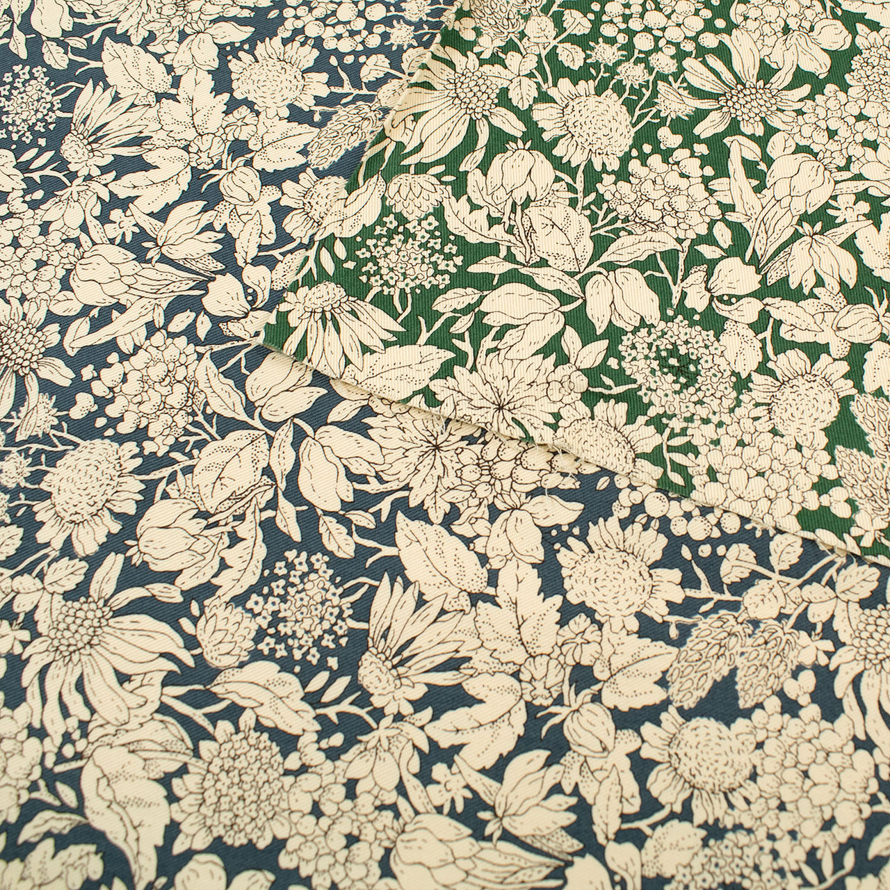 落ち着いた色合いのツイル生地プリントです。小物やエプロンにおすすめです。